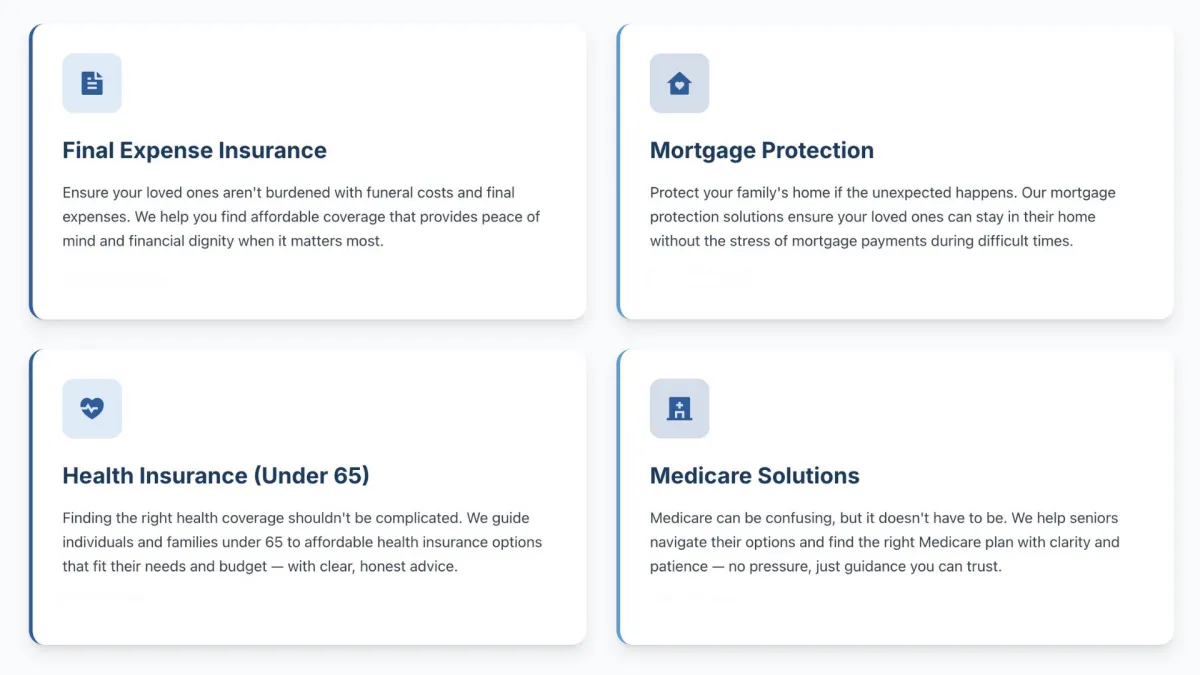 To protect families by providing honest, affordable insurance solutions — so no loved one is left with a financial burden. We serve with integrity, clarity, and commitment, always putting people before policies.
